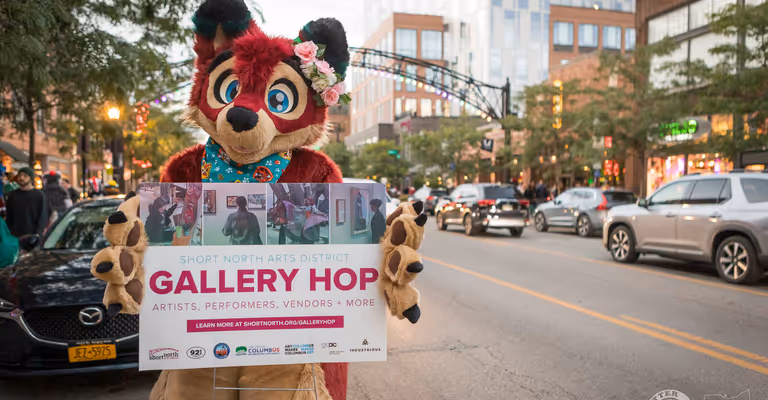 The furwalk is “parade-style,” where we form a line and walk along the sidewalk, usually interacting with people along the way for photos and high-fives. Occasionally, the walk happens during Gallery Hop’s “Hops On High” event, which is a street festival, and it allows us to be a bit more “free” with our parade.