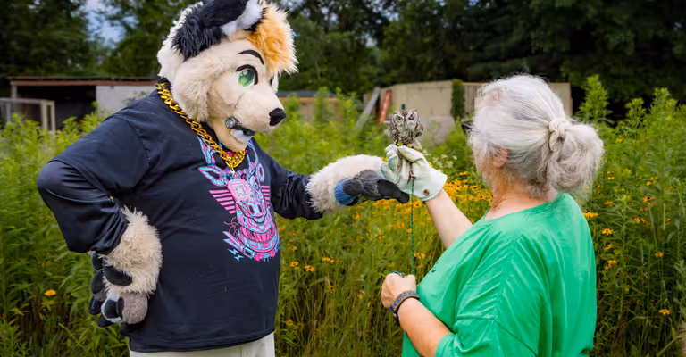 I had never heard of furries before, but as a grassroots nonprofit organization, we decided to meet via Zoom with some of AnthrOhio’s staff and volunteers. We moved forward with being the charity for 2023 and ended up being the charity for 2024 and 2025! In those three years, the staff and volunteers of AnthrOhio have helped us raise over $36,000! Fundraising is essential for helping us provide a home for 50 non-releasable wild animals. Most importantly, we had a great time interacting with the conference attendees and forging friendships with those involved with AnthrOhio.